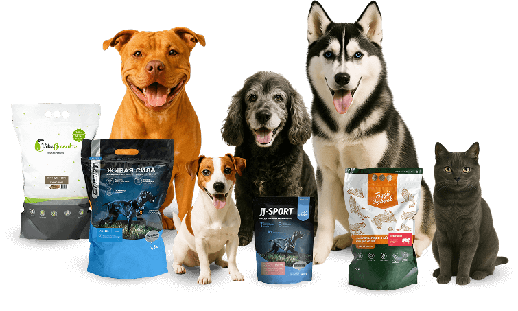 Мы изготавливаем сухие полнорационные корма для собак и кошек ТМ Будь Здоров и корма для спортивных и активных собак «ЖИВАЯ СИЛА. Спорт». Подробнее о нас можно прочитать здесь.